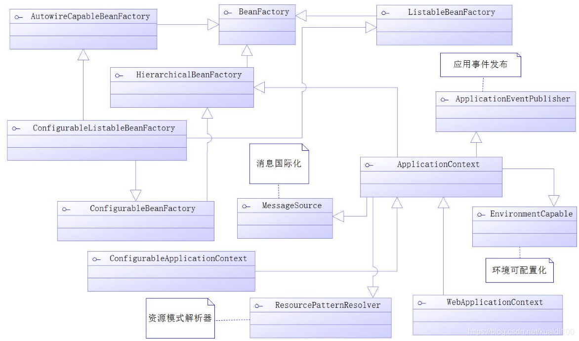 在BeanFactory接口的基础上,ApplicationContext接口还扩展了如下的接口:
