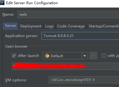 在idea 控制台日志输出设置中文乱码时,可以设置如下Tomcat启动参数:
