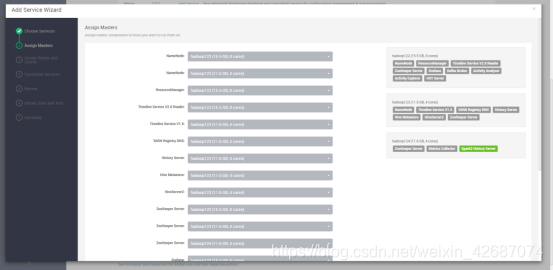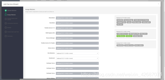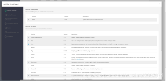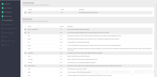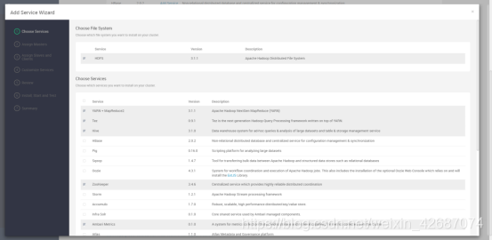 选择 HDFS、Yarn+MapReduce2、Tez、Zookeeper、Ambari Metrics(服务组件)