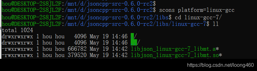 sudo apt-get install scons4、切换到jsoncpp目录中,运行scons platform=linux-gcc,此后会在 \libs\linux-gcc-7\ 目录生成库文件