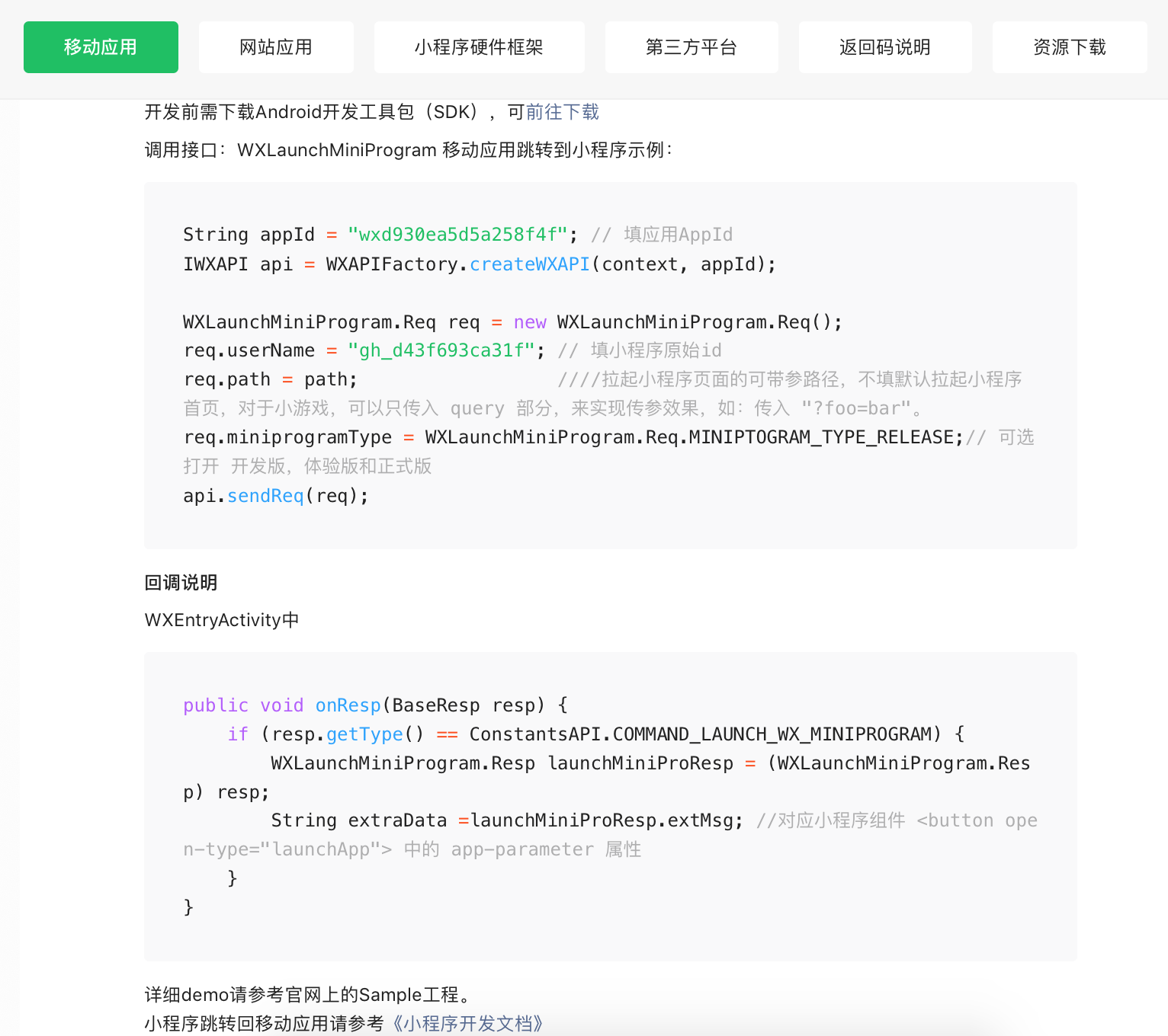 上周公司有个老项目,需要APP跳转到微信小程序,我看了下微信的文档,照着写了下,发现没有用,方法找不到