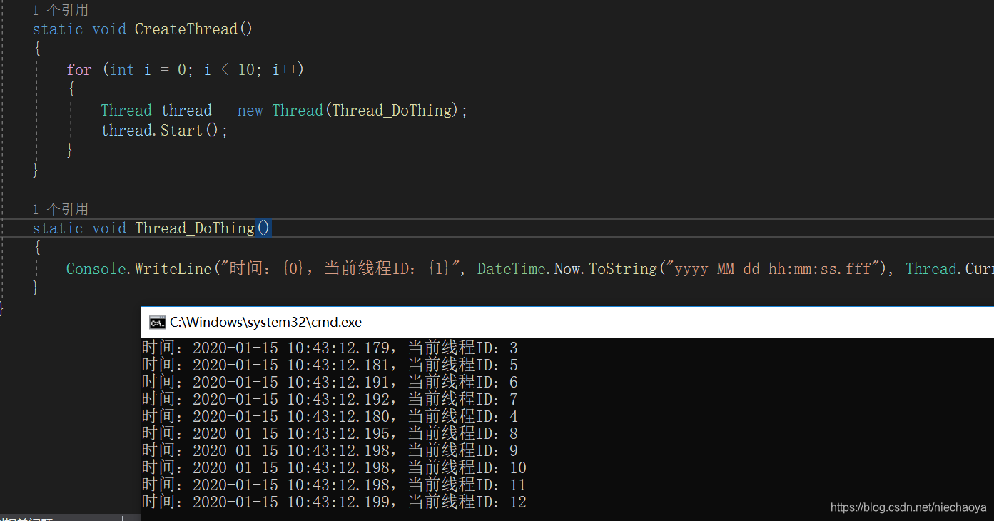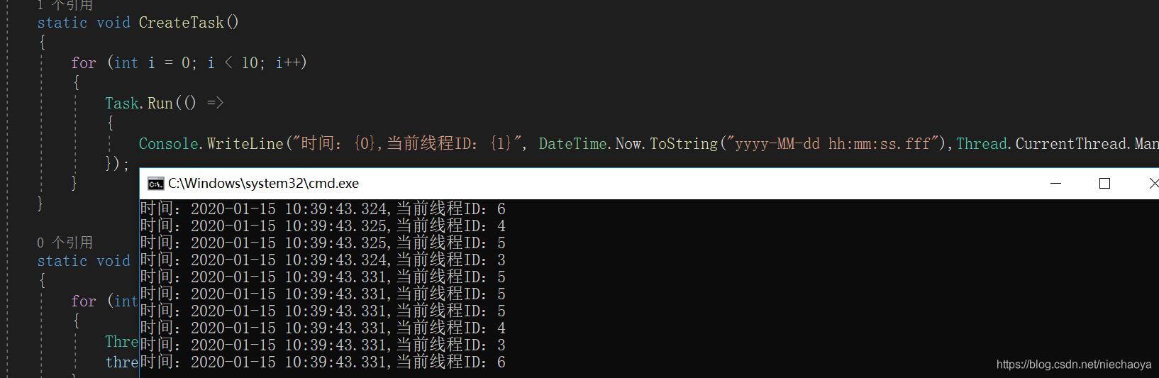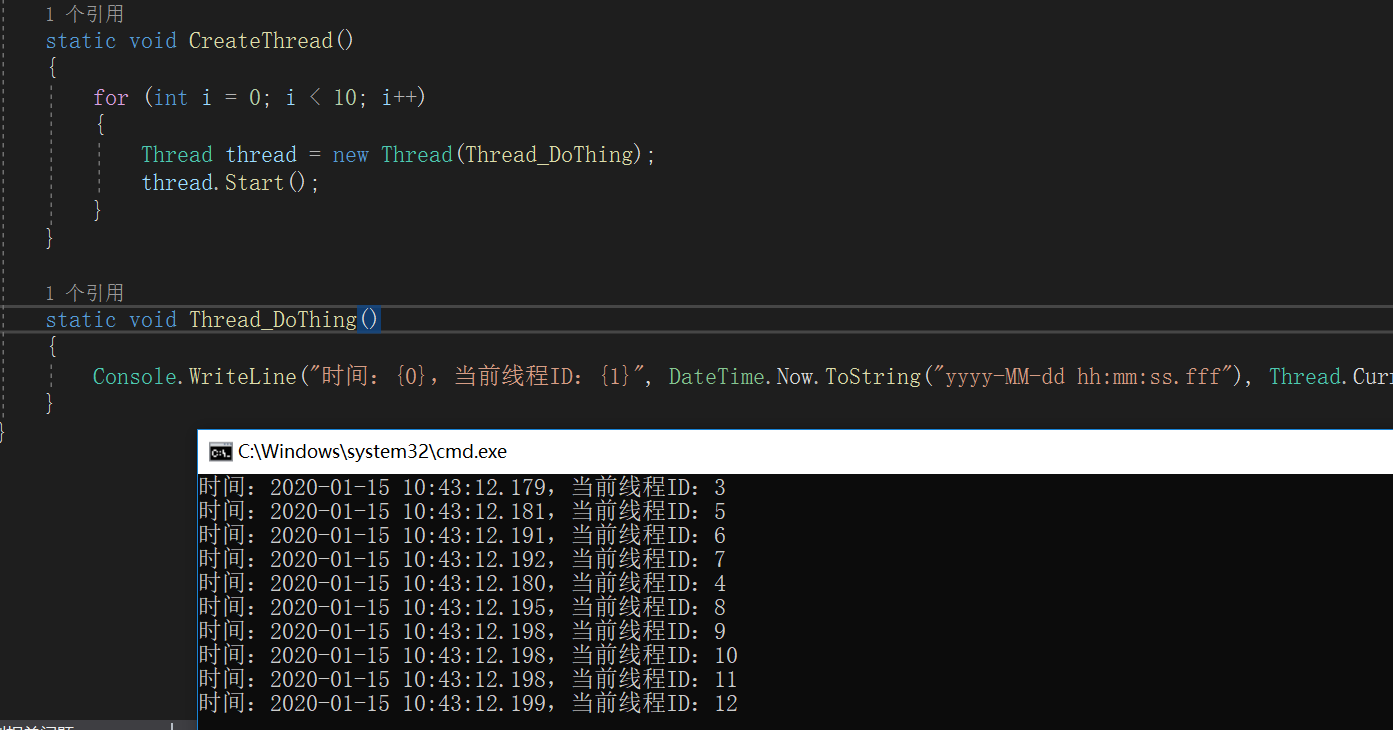 创建任务的基本原理是使用线程池,也就是说任务最终也是要交给线程去执行的。但是微软优化了任务的线程池,使线程的控制更加精准和高效。对于需要频繁创建线程的程序来说,使用线程池无疑是最好的选择。因为创建一个线程需要消耗大量的系统资源,而线程池很好的解决了这个问题。当你使用线程池创建10个线程时,系统可能只创建了3、4个线程,因为线程池中的线程是可以循环使用的。下面举个例子说明一下: