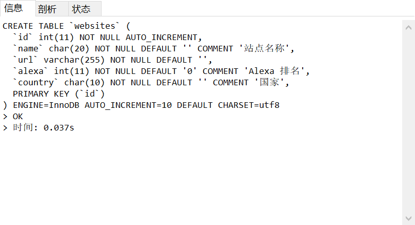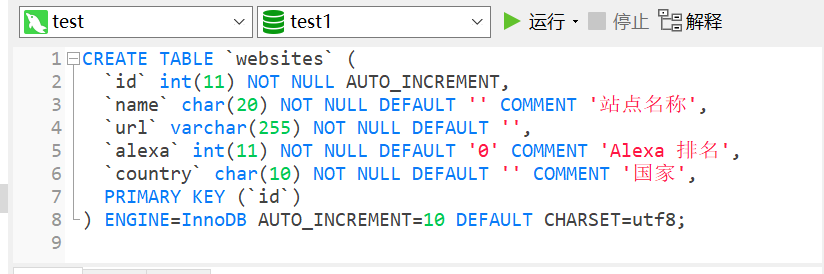 `name` char(20) NOT NULL DEFAULT '' COMMENT '站点名称',