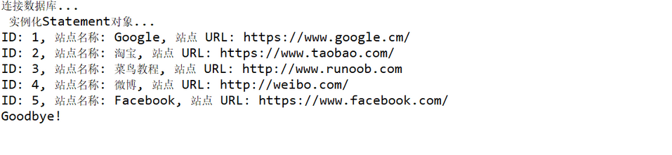 sql = "SELECT id, name, url FROM websites";