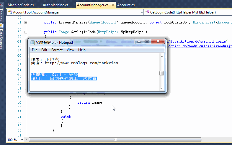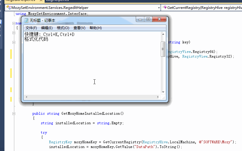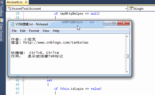 Ctrl+E,D(ctrl+k,d) ----格式化全部代码 (每个使用过vs的人 如果不会用这个快捷键那可是亏大了哦)