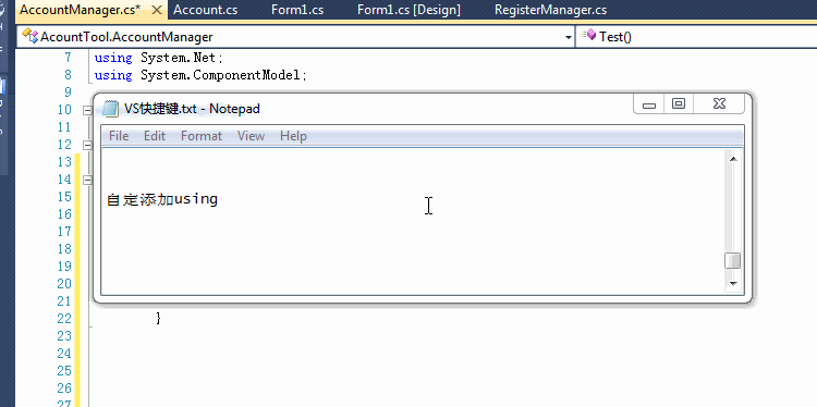 ctrl+shift+f10:自动添加using命名空间
