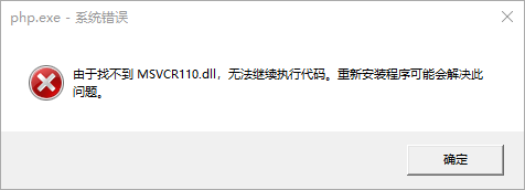 命令行执行php命令报错:由于找不到 MSVCR110.dll,无法继续执行代码。重新安装程序可能会解决此问题。