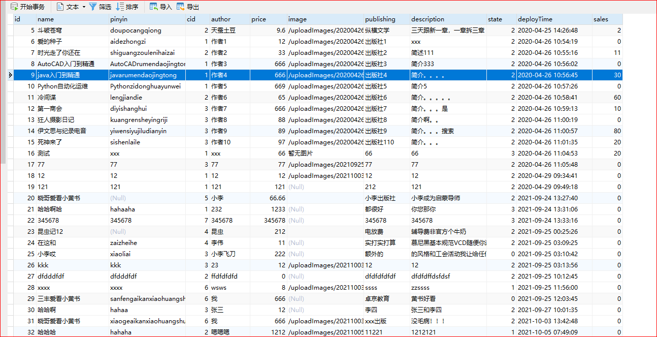 注意java入门到精通这本书的销量为30,接下来运行可以使得销量改变: