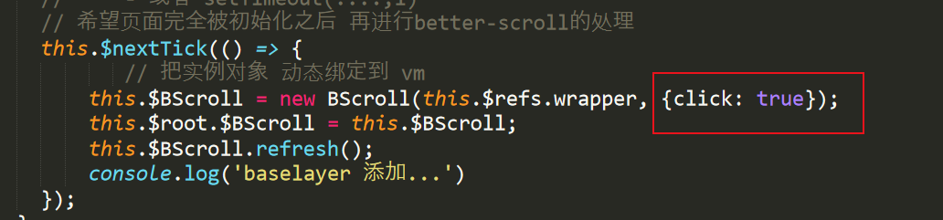 - 作用:better-scroll 默认会阻止浏览器的原生 click 事件。当设置为 true,better-scroll 会派发一个 click 事件,我们会给派发的 event 参数加一个私有属性