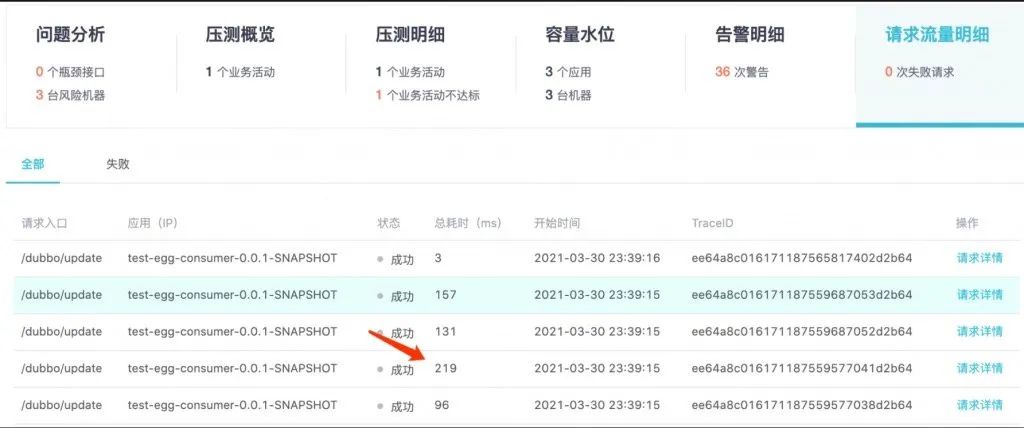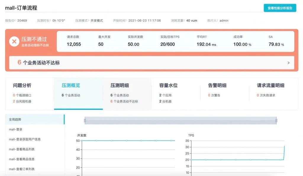 性能瓶颈快速定位:性能测试结果直接展现业务链路中性能瓶颈的节点。