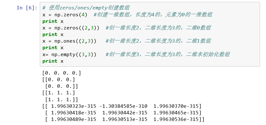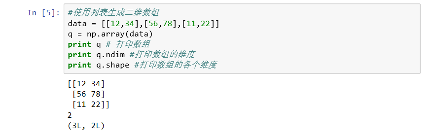 ndarray属性:ndim属性,表示维度个数;shape属性,表示各维度大小;dtype属性,表示数据类型。