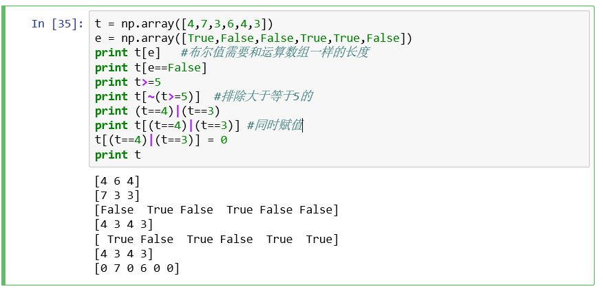 布尔索引:使用布尔数组作为索引。arr[condition],condition为一个条件/多个条件组成的布尔数组。