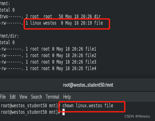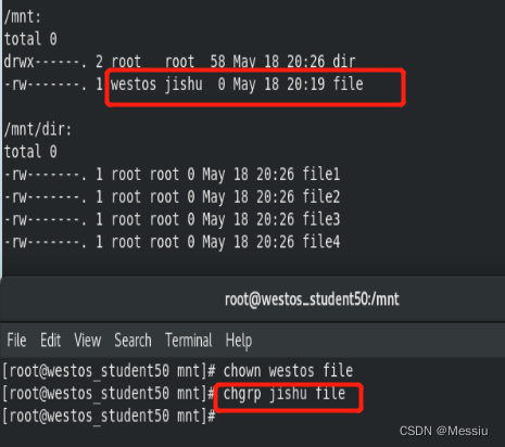 chown linux.westos file 同时更改file文件的拥有者和拥有组为linux和westos