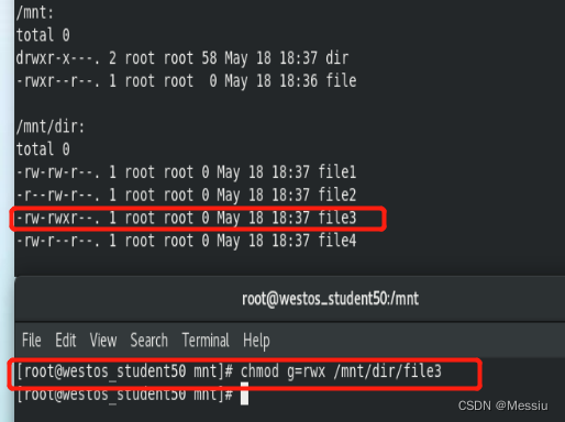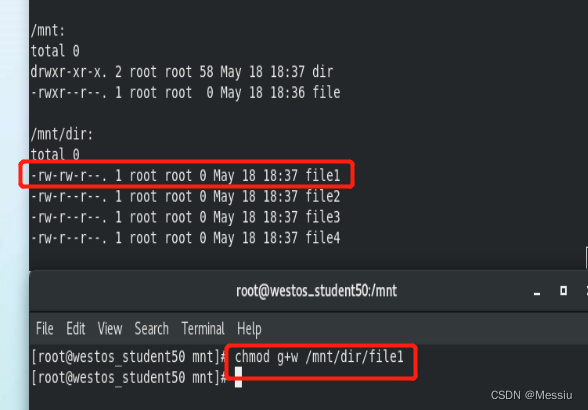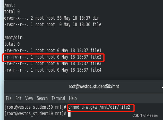 chmod u-w,g+w /mnt/dir/file2 设定file2文件的拥有者无可读权限,拥有组可读权限