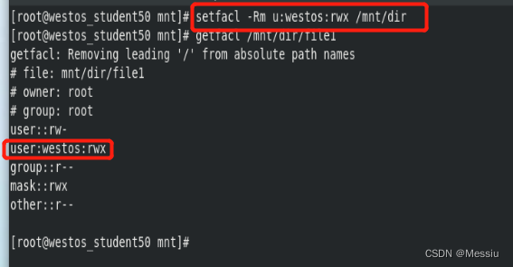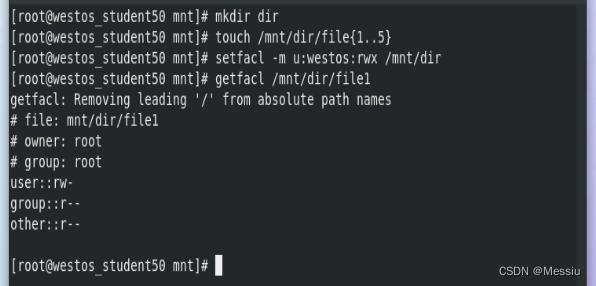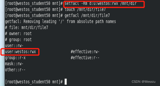 setfacl -Rm d:u:westos:rwx /mnt/dir //添加westos用户的特殊权限给dir目录及dir目录中的文件