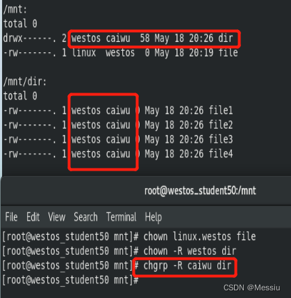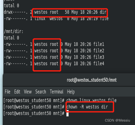 chown -R westos dir 更改dir及其内容的拥有者为westos