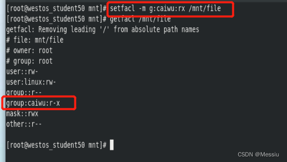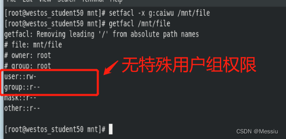 setfacl -x g:caiwu /mnt/file 删除列表中的caiwu用户组