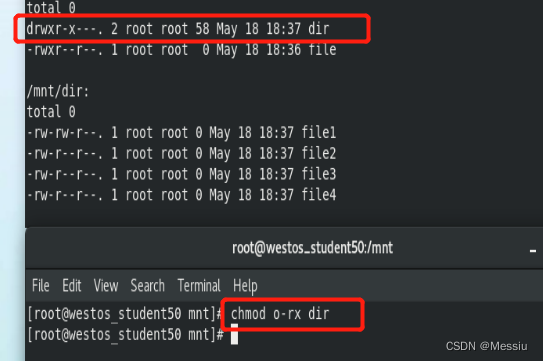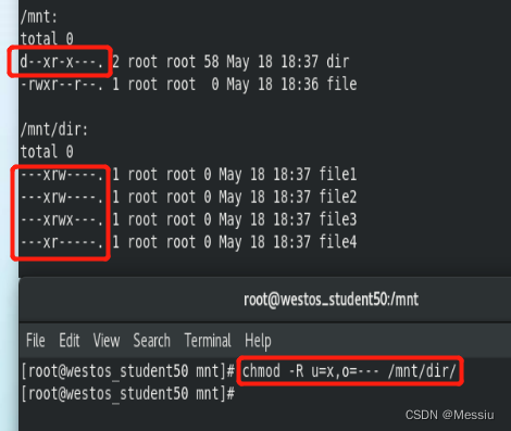 chmod -R u=x o=--- /mnt/dir/ 设定dir目录中所有文件的拥有者可执行权,其他用户无权限