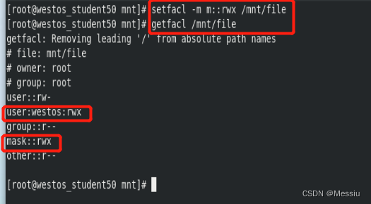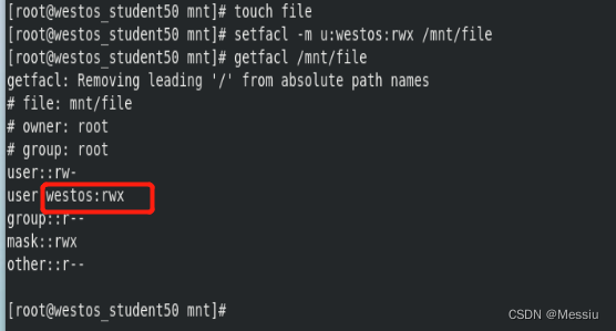 setfacl -m u:westos:rwx /mnt/dir 添加westos用户的特殊权限给dir目录