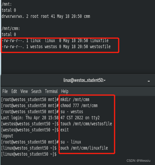 touch /mnt/cmm/westosfile //在cmm目录下建立westosfile文件