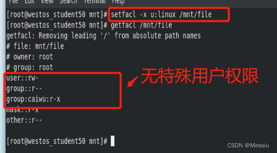 setfacl -x u:linux /mnt/file 删除列表中的linux用户