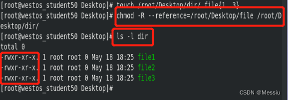 chmod -R --reference=/root/Desktop/file /root/Desktop/dir/ 将文件file的权限复制到目录dir及目录dir中的所有文件上