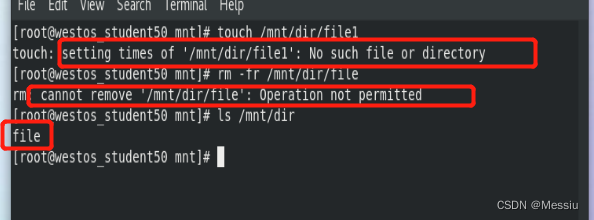 不难发现,可以正常查看文件,但无法新建和删除文件,表明 i 权限正常运行