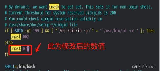 若要永久修改umask值,需要修改/etc/bashrc和/etc/profile的两个文件中umask的数值