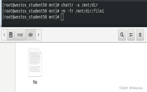 chattr +a /mnt/dir //添加attr权限使用户只能添加不能删除