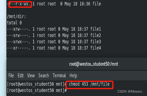 chmod 453 /mnt/file 将file的用户权限更改为453