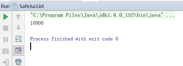 import java.util.concurrent.CopyOnWriteArrayList; // 安全的集合JUC public class SafeJucList { public static void main(String[] args) { CopyOnWriteArrayList<String> list = new CopyOnWriteArrayList<String>(); for (int i = 0 ; i < 10000 ; i++){ new Thread(()->list.add(Thread.currentThread().getName())).start(); } try { Thread.sleep(3000); } catch (InterruptedException e) { e.printStackTrace(); } System.out.println(list.size()); } }