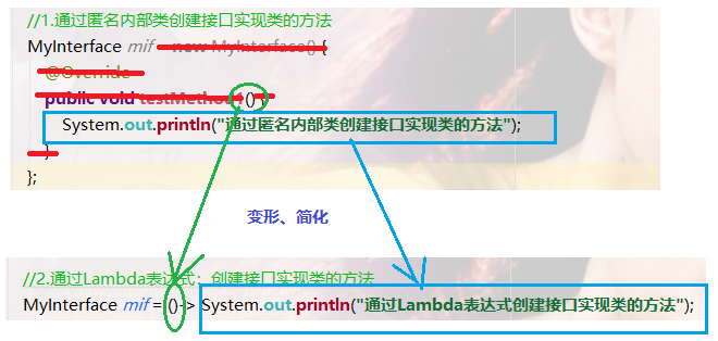 Lambda的本质是java中接口的一个实例(接口的实现类的具体对象)。可通过下图形象理解。