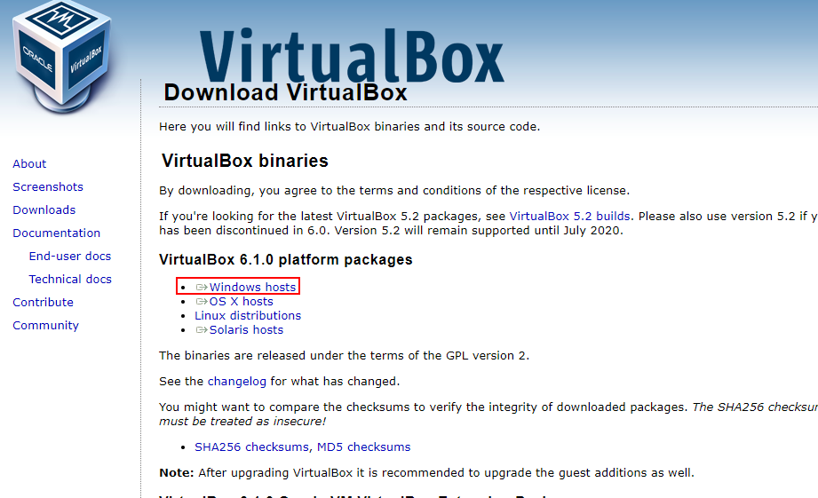 下载地址如下:Downloads – Oracle VM VirtualBox