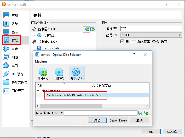 存储/ 控制器:IDE下添加刚才下载的ISO镜像