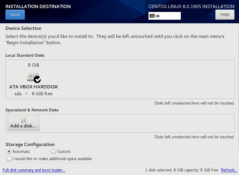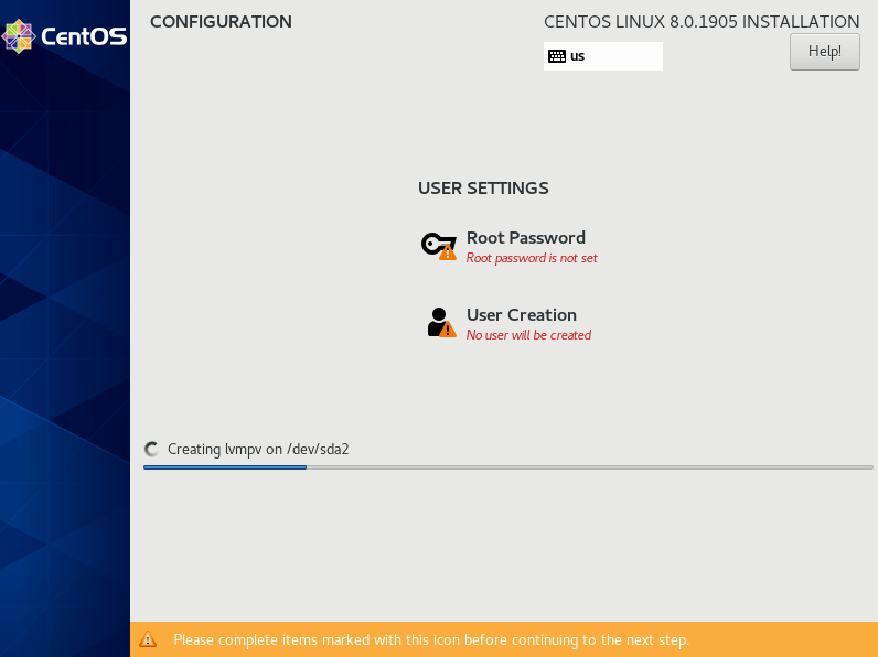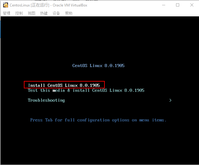 这里选择第一项Install CentOS Linux 8.0.1905