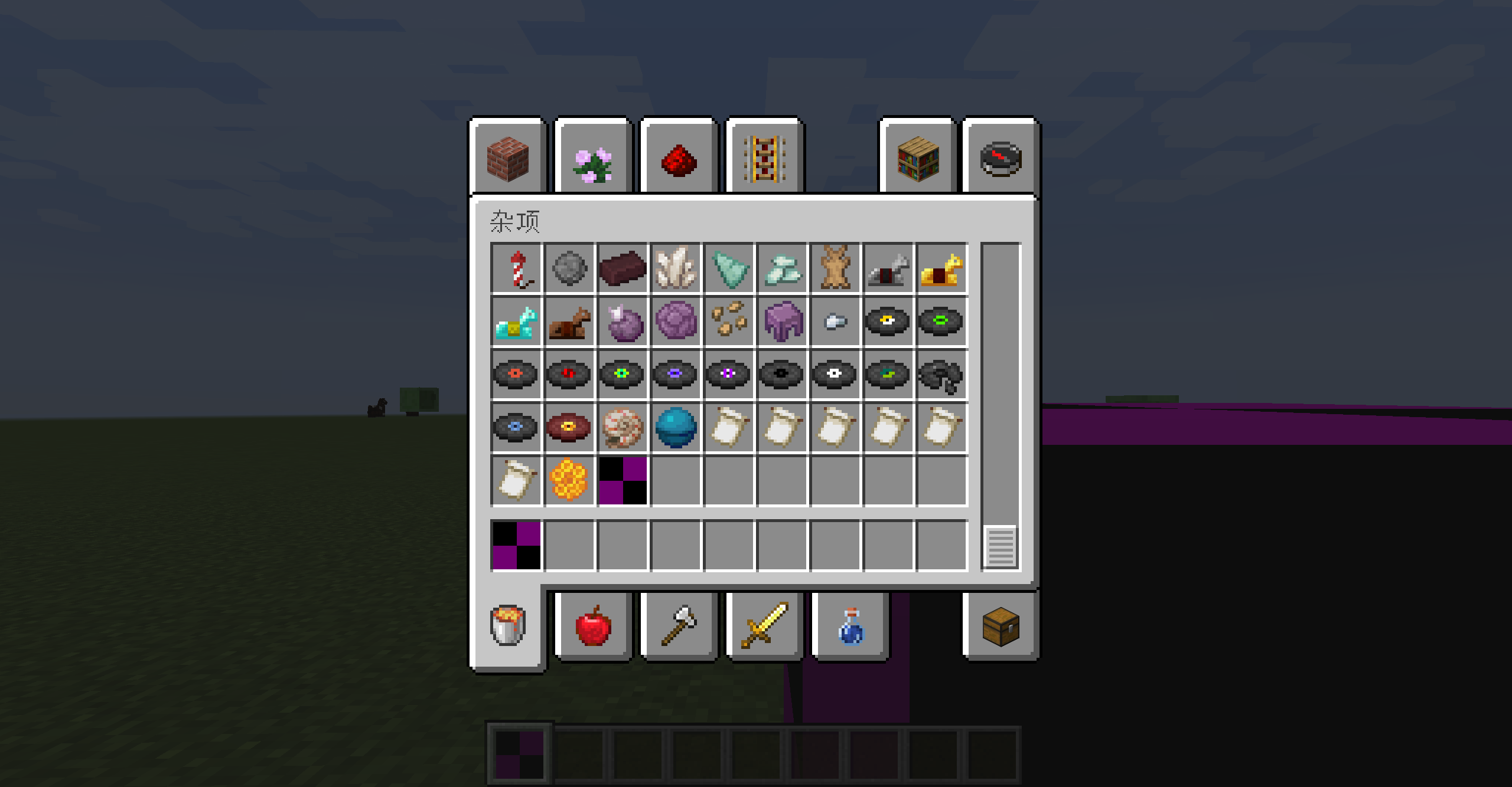 下一节我们将建立自己的创造模式物品栏,现在暂且寄放在那里。