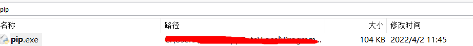 注:如果不知道文件的路径可以下载一个evertrhing这个软件,然后搜索pip就能找到文件的完整路径了voidtools