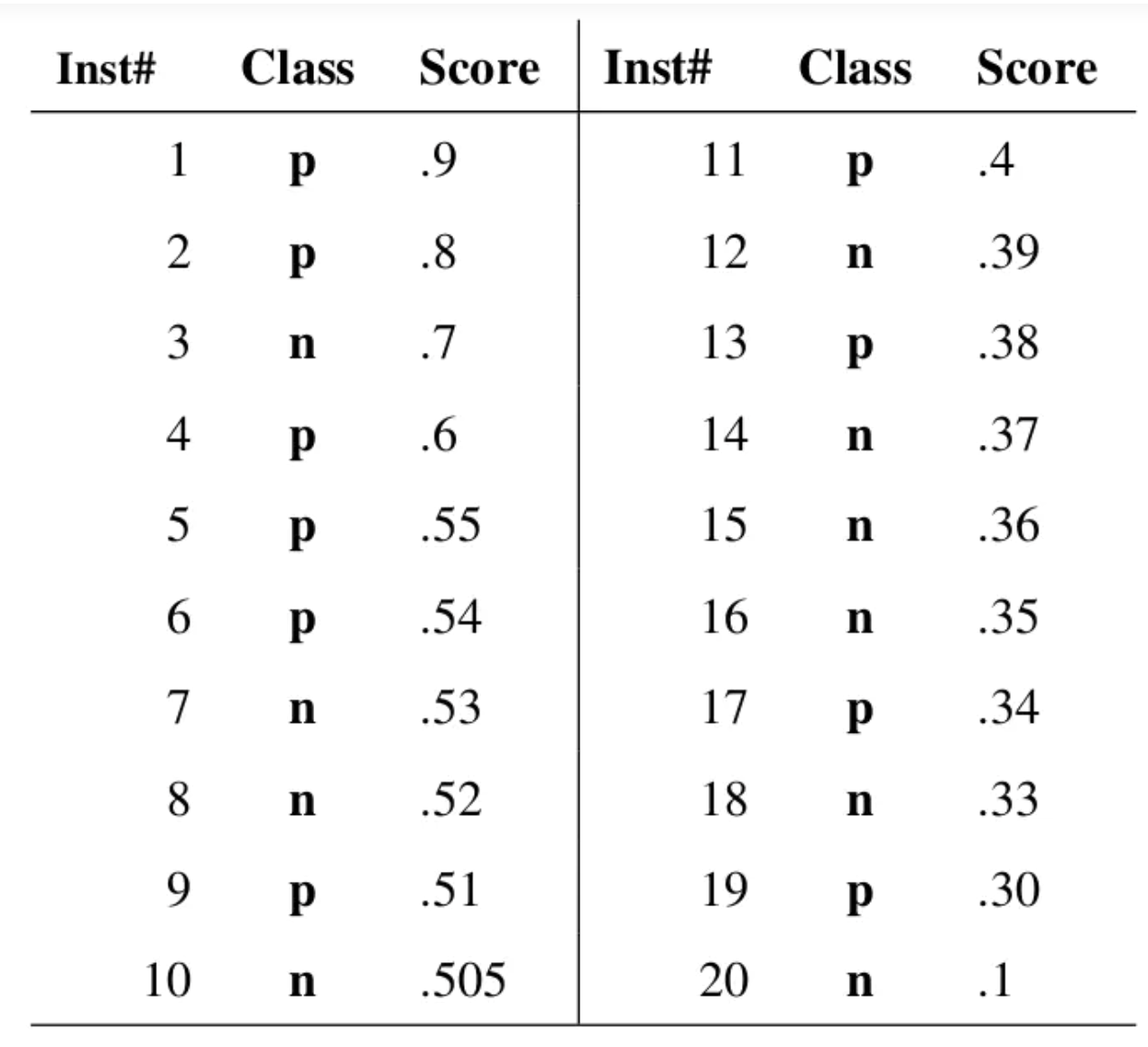 假如有上面这样一组数据,score是将该样本分为正样本的阈值,我们取不同的阈值就会得到不同的分类结果,对应多组FPR和TPR,即ROC曲线上的一点,这样就可以画出曲线了。