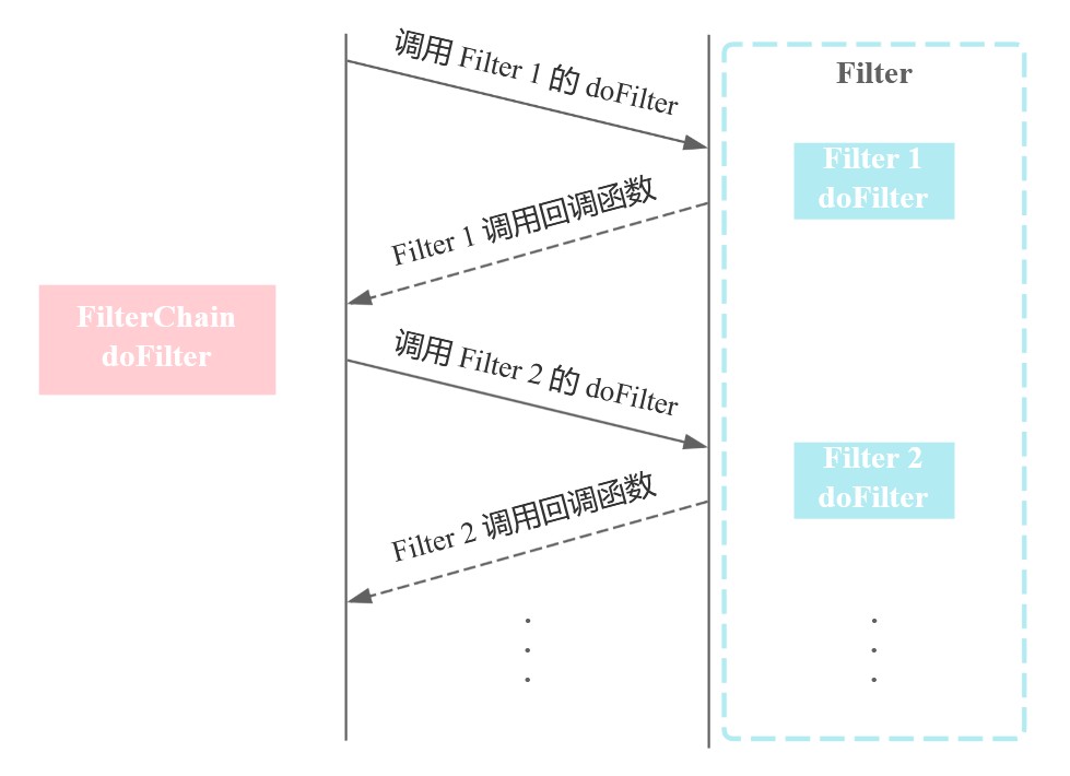 了解了 Filter 的使用方法之后,我们来分析一下 Filter 的实现原理。上文中提到,客户端的请求会在过滤链上依次传递,链上的每个 Filter 都会调用 doFilter 方法对请求进行处理。这个过程能够有条不紊的进行,底层依靠的是函数的回调机制。