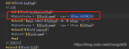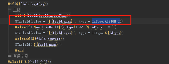 IdType.ASSIGN_ID注解,在模板中修改无效,只能在生成器的代码中设置,见上篇代码: