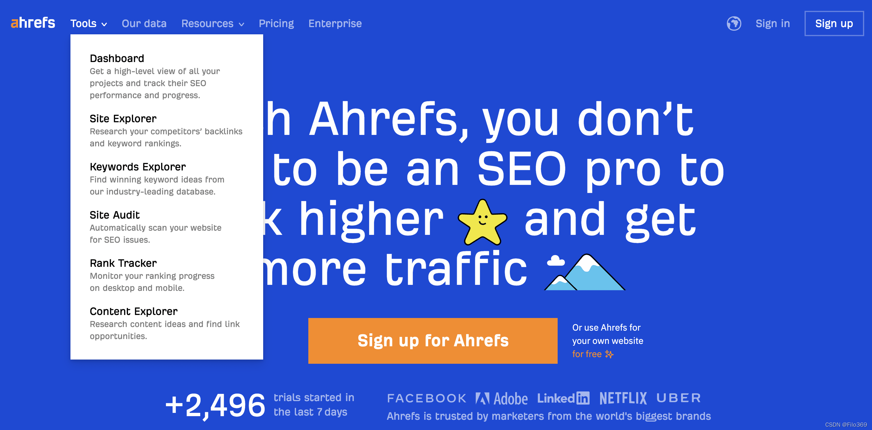 Ahrefs 是一个国外的 SEO 工具,基本是每个做独立站 SEO,国外英文站运营必备工具。Ahrefs 通常被用在 SEO 关键字调研、独立站外链建设,竞争对手外链反查上。