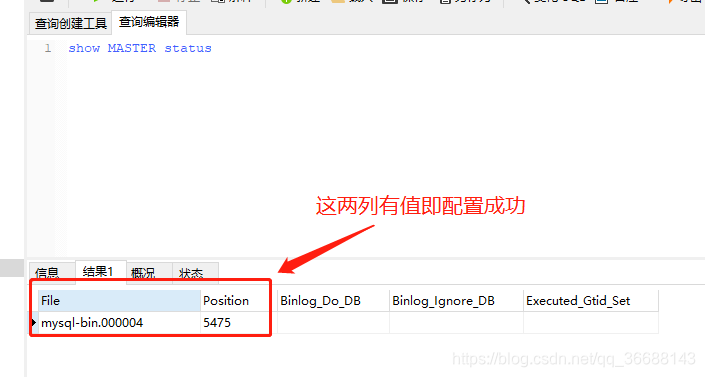 GRANT REPLICATION SLAVE ON *.* TO 'root'@'localhost' IDENTIFIED BY 'root'查看主库的状态