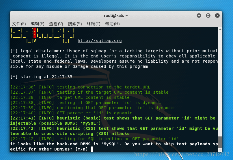 kali中payloads.xml的默认位置是 /usr/share/golismero/tools/sqlmap/xml/payloads.xml
