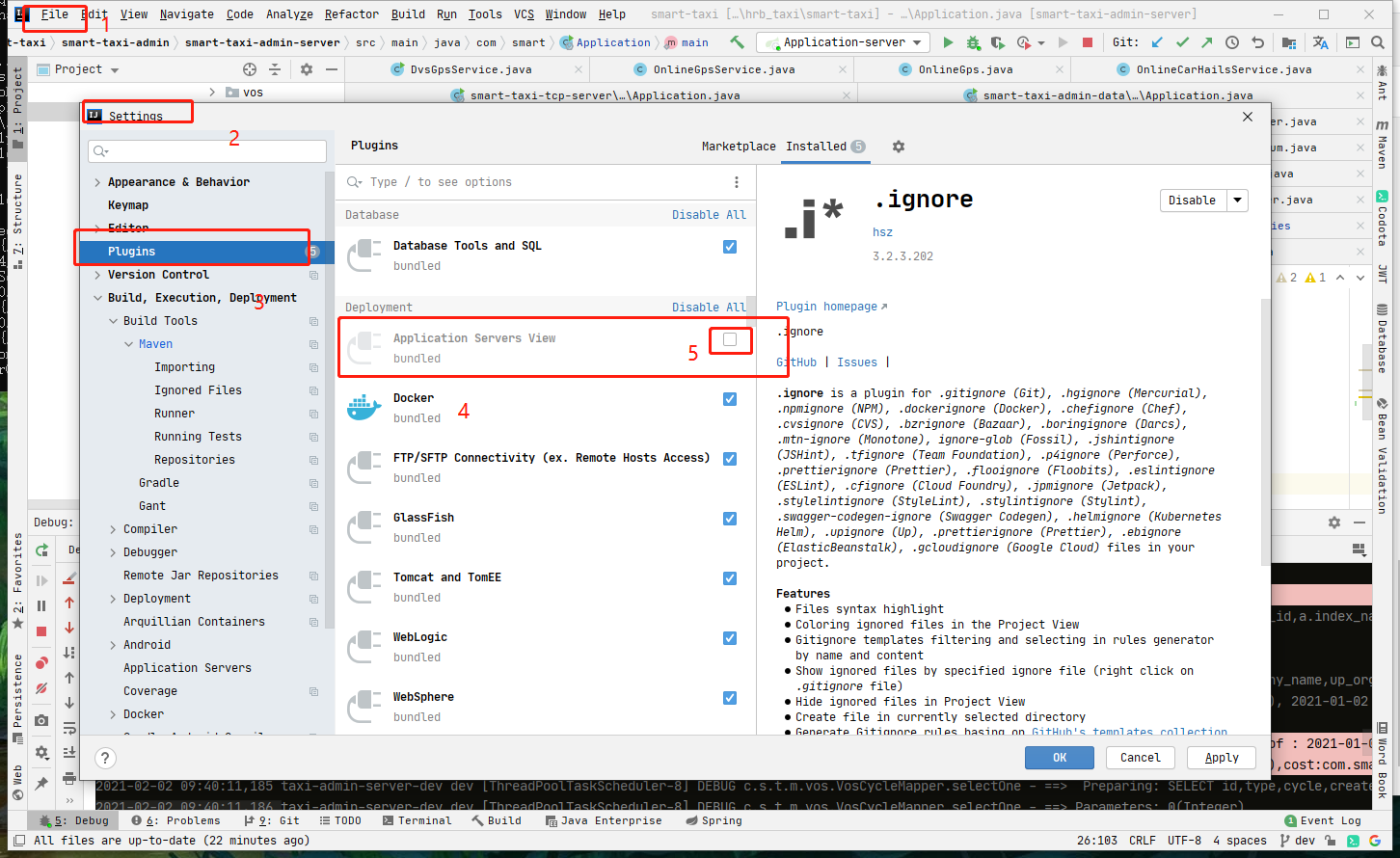 </component>3 选择 File-> Settings -> Plugins -> 找到已安装的插件 -> 找到 Application Server View 点击 取消勾选