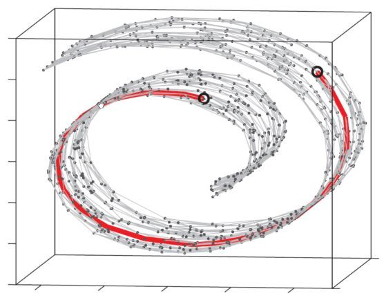 如果放到流形学上,那么这两个点距离就得沿着图中曲线绕两圈
