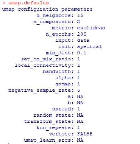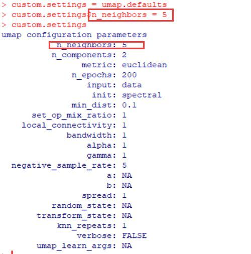 custom.settings = umap.defaults custom.settings$n_neighbors = 5 custom.settings
