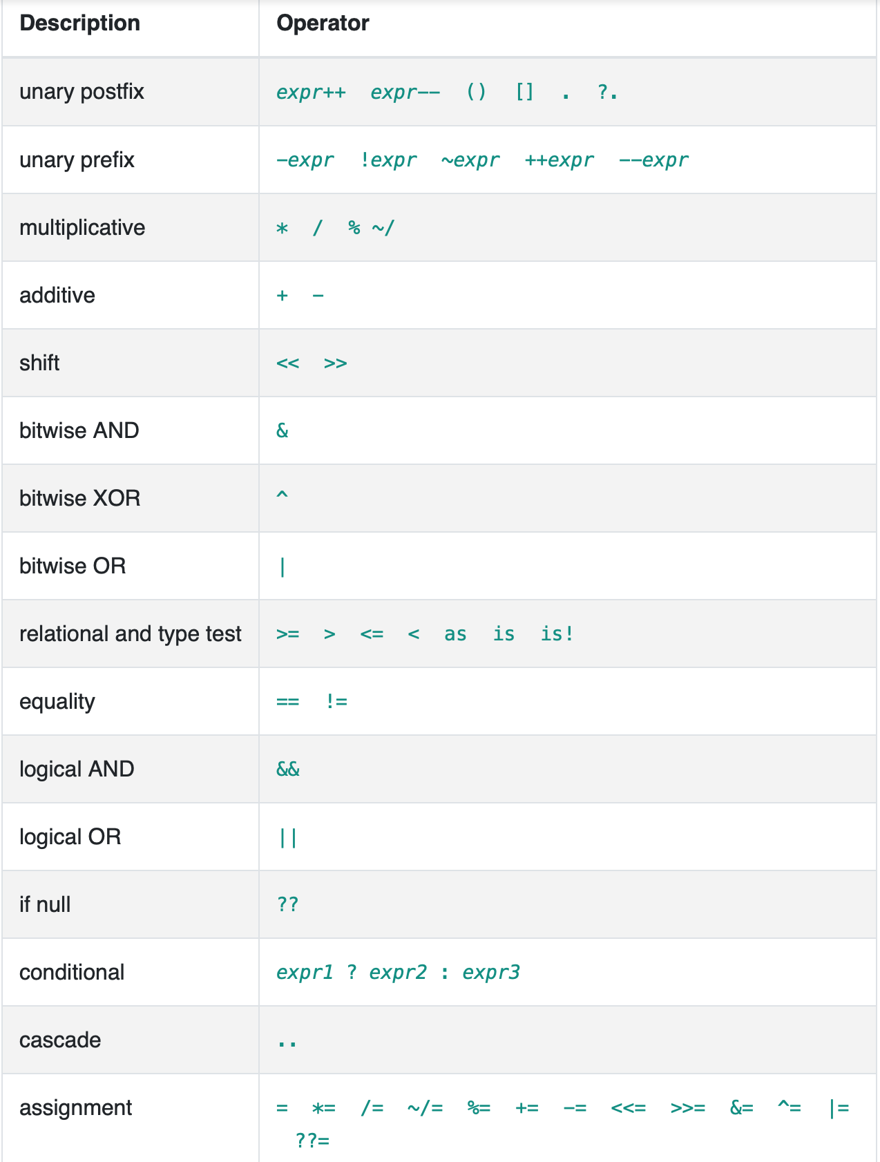 - Dart同样有表达式和变量声明,比如说三目运算符condition ? expr1 : expr2