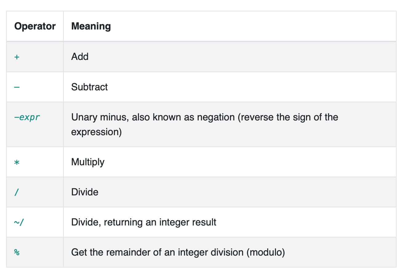 - numbers: int, double